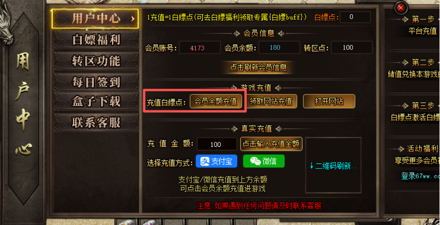 4、成功充值100获得游戏充值另送100白嫖点,可去【白嫖福利】激活白嫖buff