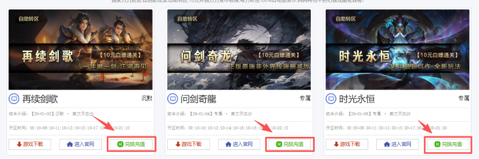 1、进入82ww平台,下滑找到想要兑换的游戏,点击【兑换充值】;